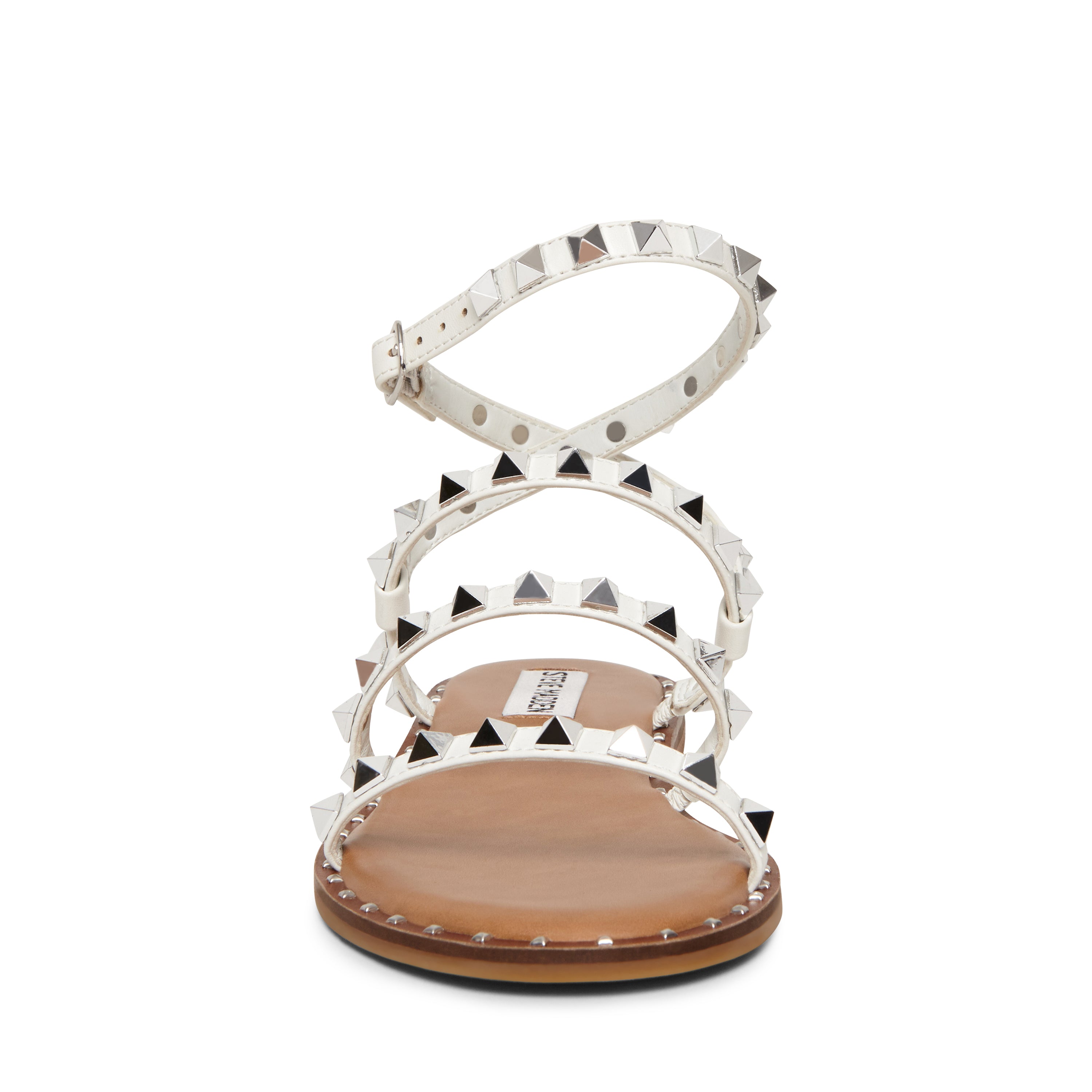 Incrociando delicati cinturini skinny con spigolose borchie a piramide in metallo, il sandalo TRAVEL è allo stesso tempo feroce e femminile. Abbinalo a un vestito lungo drappeggiato per un look degno di una dea.